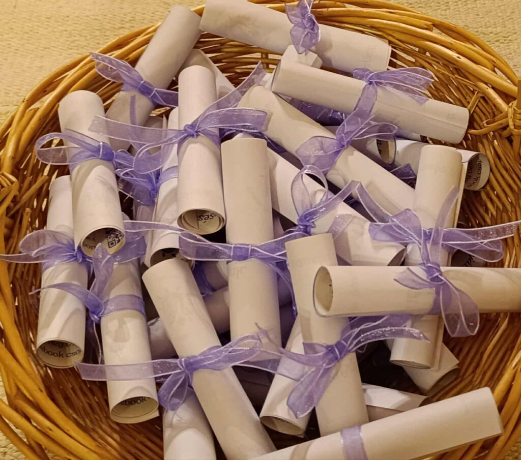 Volt, aki egy városi parkban rejtette el az idézeteket, és olyan is, aki a gyerekek óvodai öltőzőszekrényébe tette, így mindenki hazavihetett egyet. Gyulán, Nyíregyházán, Debrecenben, Budapesten, Kunpeszéren, Adacson, Gádoroson, Kiszomboron, Pátyon, Kerekegyházán, Ócsán, Inárcson, Százhalombattán, Előszálláson, Érden, Mezőlakon, Békéscsabán, Gyömrőn, Csongrádon, Röszkén, Békésen, Brightonban (Anglia). Az idézetek eljutottak pedagógusokhoz, szülőkhöz, gyerekekhez és egyetemistákhoz is. Aki megtalálta, hírt adott róla a Pompás Mesés Pedagógusok Facebook-csoportban, amiért nagyon hálásak vagyunk! A kezdeményezésünk jól sikerült, így jövőre biztosan folytatjuk.