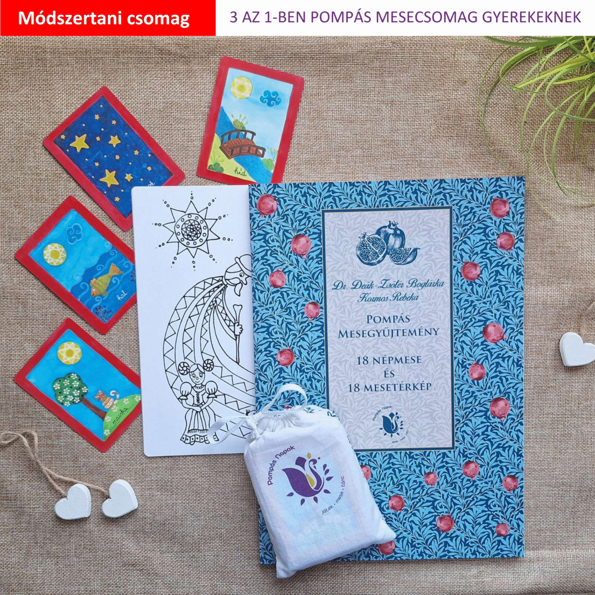 Szó szerint Pompás csomag! Szívből ajánlom otthonra, mert a könyvben gondosan válogatott népmesék, szívből rajzolt mesetérképek laknak. A mesekártyák pedig számos játék vagy beszélgetés beindítói lehetnek.
