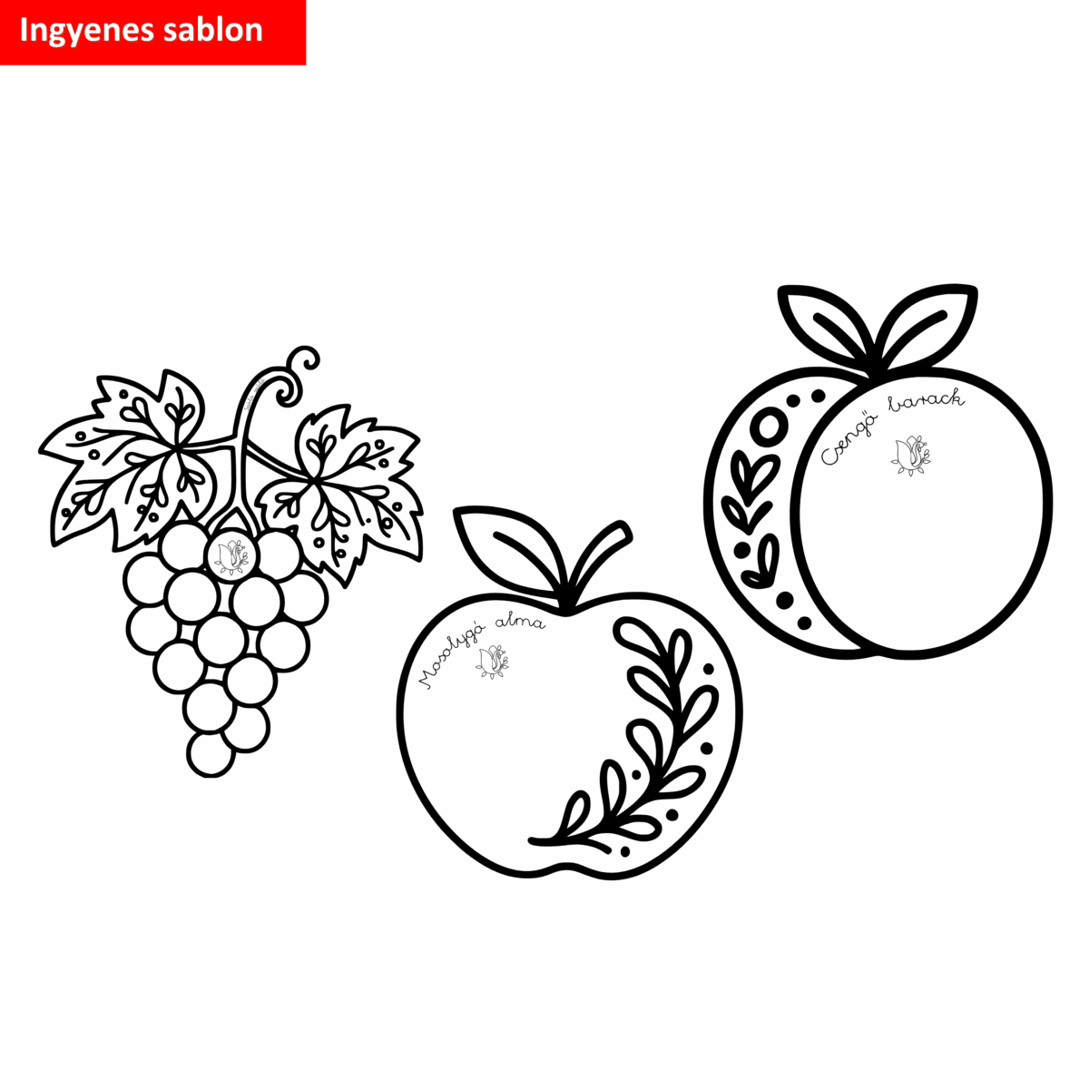 Szóló szőlő, mosolygó alma, csengő barack színező